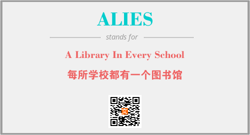 英文缩略词“ALIES”经常作为“A Library In Every School”的英文缩写来使用,中文表示:“每所学校都有一个图书馆”。本文将详细介绍英文缩写词ALIES所代表英文单词,其对应的中文拼音、详细解释以及在英语中的流行度。此外,还有关于缩略词ALIES的分类、应用领域及相关应用示例等。