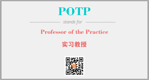 英文缩略词“POTP”经常作为“Professor of the Practice”的英文缩写来使用,中文表示:“实习教授”。本文将详细介绍英文缩写词POTP所代表英文单词,其对应的中文拼音、详细解释以及在英语中的流行度。此外,还有关于缩略词POTP的分类、应用领域及相关应用示例等。