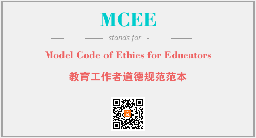 上述内容是“Model Code of Ethics for Educators”作为“MCEE”的缩写,解释为“教育工作者道德规范范本”时的信息,以及英文缩略词MCEE所代表的英文单词,其对应的中文拼音、详细解释以及在英文中的流行度和相关分类、应用领域及应用示例等。