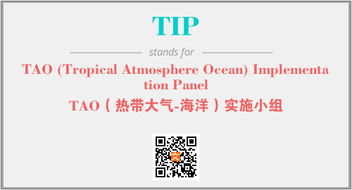 上述内容是“TAO (Tropical Atmosphere Ocean) Implementation Panel”作为“TIP”的缩写,解释为“TAO(热带大气-海洋)实施小组”时的信息,以及英文缩略词TIP所代表的英文单词,其对应的中文拼音、详细解释以及在英文中的流行度和相关分类、应用领域及应用示例等。