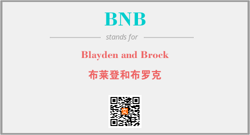 上述内容是“Blayden and Brock”作为“BNB”的缩写,解释为“布莱登和布罗克”时的信息,以及英文缩略词BNB所代表的英文单词,其对应的中文拼音、详细解释以及在英文中的流行度和相关分类、应用领域及应用示例等。