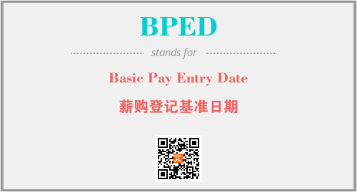 上述内容是“Basic Pay Entry Date”作为“BPED”的缩写,解释为“薪购登记基准日期”时的信息,以及英文缩略词BPED所代表的英文单词,其对应的中文拼音、详细解释以及在英文中的流行度和相关分类、应用领域及应用示例等。