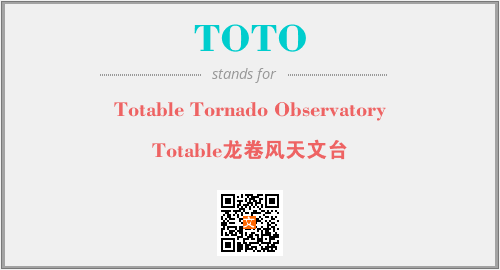 英文缩略词“TOTO”经常作为“Totable Tornado Observatory”的英文缩写来使用,中文表示:“Totable龙卷风天文台”。本文将详细介绍英文缩写词TOTO所代表英文单词,其对应的中文拼音、详细解释以及在英语中的流行度。此外,还有关于缩略词TOTO的分类、应用领域及相关应用示例等。