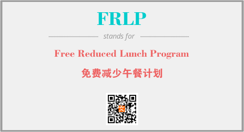 英文缩略词“FRLP”经常作为“Free Reduced Lunch Program”的英文缩写来使用,中文表示:“免费减少午餐计划”。本文将详细介绍英文缩写词FRLP所代表英文单词,其对应的中文拼音、详细解释以及在英语中的流行度。此外,还有关于缩略词FRLP的分类、应用领域及相关应用示例等。