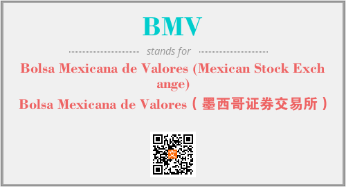 英文缩略词“BMV”经常作为“Bolsa Mexicana de Valores (Mexican Stock Exchange)”的英文缩写来使用,中文表示:“Bolsa Mexicana de Valores(墨西哥证券交易所)”。本文将详细介绍英文缩写词BMV所代表英文单词,其对应的中文拼音、详细解释以及在英语中的流行度。此外,还有关于缩略词BMV的分类、应用领域及相关应用示例等。