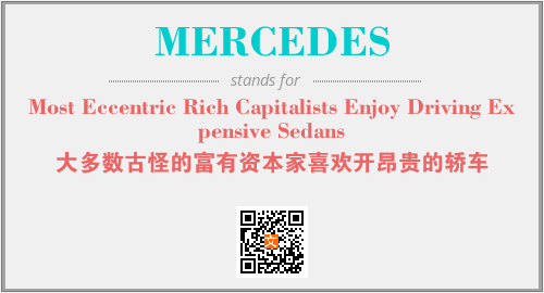 以上为Most Eccentric Rich Capitalists Enjoy Driving Expensive Sedans英文缩略词MERCEDES的中文解释,以及该英文缩写在英语的流行度、分类和应用领域方面的信息。