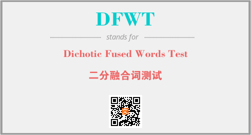 上述内容是“Dichotic Fused Words Test”作为“DFWT”的缩写,解释为“二分融合词测试”时的信息,以及英文缩略词DFWT所代表的英文单词,其对应的中文拼音、详细解释以及在英文中的流行度和相关分类、应用领域及应用示例等。