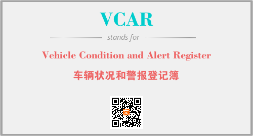 上述内容是“Vehicle Condition and Alert Register”作为“VCAR”的缩写,解释为“车辆状况和警报登记簿”时的信息,以及英文缩略词VCAR所代表的英文单词,其对应的中文拼音、详细解释以及在英文中的流行度和相关分类、应用领域及应用示例等。