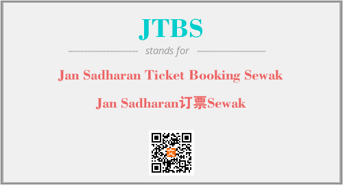 上述内容是“Jan Sadharan Ticket Booking Sewak”作为“JTBS”的缩写,解释为“Jan Sadharan订票Sewak”时的信息,以及英文缩略词JTBS所代表的英文单词,其对应的中文拼音、详细解释以及在英文中的流行度和相关分类、应用领域及应用示例等。