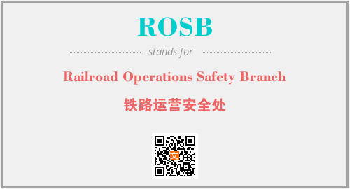 上述内容是“Railroad Operations Safety Branch”作为“ROSB”的缩写,解释为“铁路运营安全处”时的信息,以及英文缩略词ROSB所代表的英文单词,其对应的中文拼音、详细解释以及在英文中的流行度和相关分类、应用领域及应用示例等。