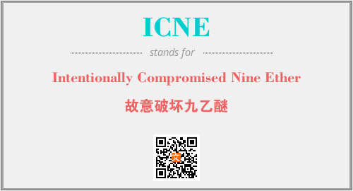 上述内容是“Intentionally Compromised Nine Ether”作为“ICNE”的缩写,解释为“故意破坏九乙醚”时的信息,以及英文缩略词ICNE所代表的英文单词,其对应的中文拼音、详细解释以及在英文中的流行度和相关分类、应用领域及应用示例等。