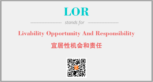 以上为Livability Opportunity And Responsibility英文缩略词LOR的中文解释,以及该英文缩写在英语的流行度、分类和应用领域方面的信息。