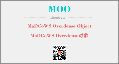 上述内容是“MaDCoWS Overdense Object”作为“MOO”的缩写,解释为“MaDCoWS Overdense对象”时的信息,以及英文缩略词MOO所代表的英文单词,其对应的中文拼音、详细解释以及在英文中的流行度和相关分类、应用领域及应用示例等。