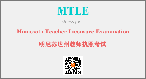 英文缩略词“MTLE”经常作为“Minnesota Teacher Licensure Examination”的英文缩写来使用,中文表示:“明尼苏达州教师执照考试”。本文将详细介绍英文缩写词MTLE所代表英文单词,其对应的中文拼音、详细解释以及在英语中的流行度。此外,还有关于缩略词MTLE的分类、应用领域及相关应用示例等。