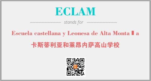 上述内容是“Escuela castellana y Leonesa de Alta Montaña”作为“ECLAM”的缩写,解释为“卡斯蒂利亚和莱昂内萨高山学校”时的信息,以及英文缩略词ECLAM所代表的英文单词,其对应的中文拼音、详细解释以及在英文中的流行度和相关分类、应用领域及应用示例等。