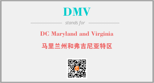 英文缩略词“DMV”经常作为“DC Maryland and Virginia”的英文缩写来使用,中文表示:“马里兰州和弗吉尼亚特区”。本文将详细介绍英文缩写词DMV所代表英文单词,其对应的中文拼音、详细解释以及在英语中的流行度。此外,还有关于缩略词DMV的分类、应用领域及相关应用示例等。