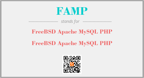 上述内容是“FreeBSD Apache MySQL PHP”作为“FAMP”的缩写,解释为“FreeBSD Apache MySQL PHP”时的信息,以及英文缩略词FAMP所代表的英文单词,其对应的中文拼音、详细解释以及在英文中的流行度和相关分类、应用领域及应用示例等。