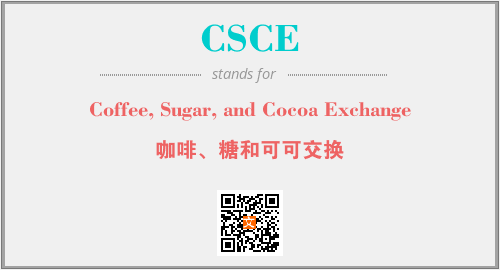 英文缩略词“CSCE”经常作为“Coffee, Sugar, and Cocoa Exchange”的英文缩写来使用,中文表示:“咖啡、糖和可可交换”。本文将详细介绍英文缩写词CSCE所代表英文单词,其对应的中文拼音、详细解释以及在英语中的流行度。此外,还有关于缩略词CSCE的分类、应用领域及相关应用示例等。