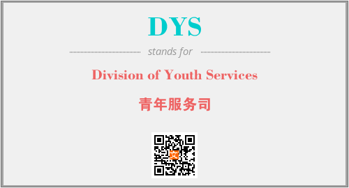 上述内容是“Division of Youth Services”作为“DYS”的缩写,解释为“青年服务司”时的信息,以及英文缩略词DYS所代表的英文单词,其对应的中文拼音、详细解释以及在英文中的流行度和相关分类、应用领域及应用示例等。