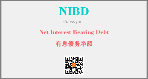 上述内容是“Net Interest Bearing Debt”作为“NIBD”的缩写,解释为“有息债务净额”时的信息,以及英文缩略词NIBD所代表的英文单词,其对应的中文拼音、详细解释以及在英文中的流行度和相关分类、应用领域及应用示例等。