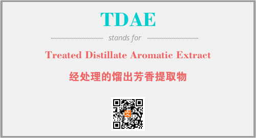 英文缩略词“TDAE”经常作为“Treated Distillate Aromatic Extract”的英文缩写来使用,中文表示:“经处理的馏出芳香提取物”。本文将详细介绍英文缩写词TDAE所代表英文单词,其对应的中文拼音、详细解释以及在英语中的流行度。此外,还有关于缩略词TDAE的分类、应用领域及相关应用示例等。