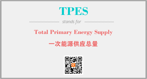 英文缩略词“TPES”经常作为“Total Primary Energy Supply”的英文缩写来使用,中文表示:“一次能源供应总量”。本文将详细介绍英文缩写词TPES所代表英文单词,其对应的中文拼音、详细解释以及在英语中的流行度。此外,还有关于缩略词TPES的分类、应用领域及相关应用示例等。