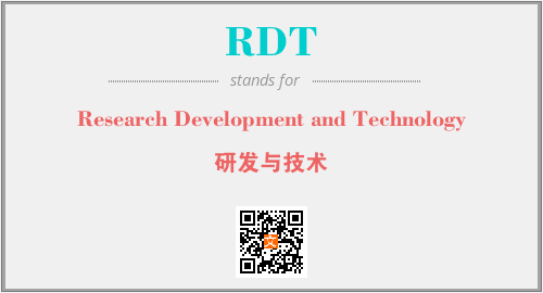 上述内容是“Research Development and Technology”作为“RDT”的缩写,解释为“研发与技术”时的信息,以及英文缩略词RDT所代表的英文单词,其对应的中文拼音、详细解释以及在英文中的流行度和相关分类、应用领域及应用示例等。
