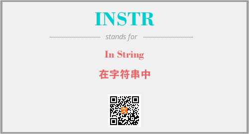 英文缩略词“INSTR”经常作为“In String”的英文缩写来使用,中文表示:“在字符串中”。本文将详细介绍英文缩写词INSTR所代表英文单词,其对应的中文拼音、详细解释以及在英语中的流行度。此外,还有关于缩略词INSTR的分类、应用领域及相关应用示例等。