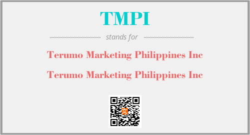 上述内容是“Terumo Marketing Philippines Inc”作为“TMPI”的缩写,解释为“Terumo Marketing Philippines Inc”时的信息,以及英文缩略词TMPI所代表的英文单词,其对应的中文拼音、详细解释以及在英文中的流行度和相关分类、应用领域及应用示例等。