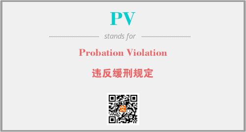 上述内容是“Probation Violation”作为“PV”的缩写,解释为“违反缓刑规定”时的信息,以及英文缩略词PV所代表的英文单词,其对应的中文拼音、详细解释以及在英文中的流行度和相关分类、应用领域及应用示例等。