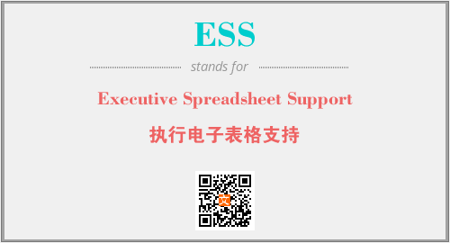 上述内容是“Executive Spreadsheet Support”作为“ESS”的缩写,解释为“执行电子表格支持”时的信息,以及英文缩略词ESS所代表的英文单词,其对应的中文拼音、详细解释以及在英文中的流行度和相关分类、应用领域及应用示例等。