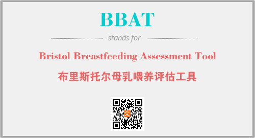 英文缩略词“BBAT”经常作为“Bristol Breastfeeding Assessment Tool”的英文缩写来使用,中文表示:“布里斯托尔母乳喂养评估工具”。本文将详细介绍英文缩写词BBAT所代表英文单词,其对应的中文拼音、详细解释以及在英语中的流行度。此外,还有关于缩略词BBAT的分类、应用领域及相关应用示例等。