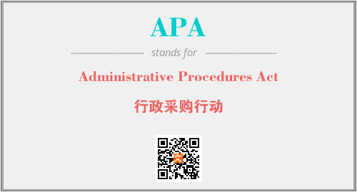 英文缩略词“APA”经常作为“Administrative Procedures Act”的英文缩写来使用,中文表示:“行政采购行动”。本文将详细介绍英文缩写词APA所代表英文单词,其对应的中文拼音、详细解释以及在英语中的流行度。此外,还有关于缩略词APA的分类、应用领域及相关应用示例等。