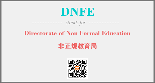 上述内容是“Directorate of Non Formal Education”作为“DNFE”的缩写,解释为“非正规教育局”时的信息,以及英文缩略词DNFE所代表的英文单词,其对应的中文拼音、详细解释以及在英文中的流行度和相关分类、应用领域及应用示例等。