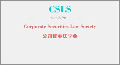上述内容是“Corporate Securities Law Society”作为“CSLS”的缩写,解释为“公司证券法学会”时的信息,以及英文缩略词CSLS所代表的英文单词,其对应的中文拼音、详细解释以及在英文中的流行度和相关分类、应用领域及应用示例等。
