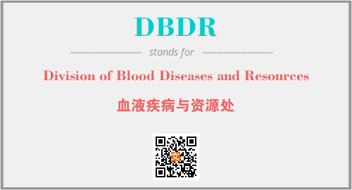 上述内容是“Division of Blood Diseases and Resources”作为“DBDR”的缩写,解释为“血液疾病与资源处”时的信息,以及英文缩略词DBDR所代表的英文单词,其对应的中文拼音、详细解释以及在英文中的流行度和相关分类、应用领域及应用示例等。