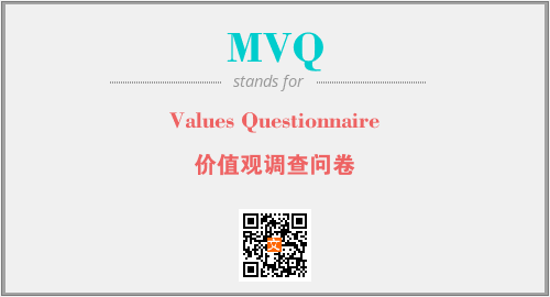 上述内容是“Values Questionnaire”作为“MVQ”的缩写,解释为“价值观调查问卷”时的信息,以及英文缩略词MVQ所代表的英文单词,其对应的中文拼音、详细解释以及在英文中的流行度和相关分类、应用领域及应用示例等。