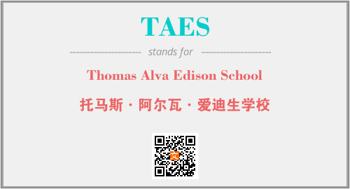 以上为Thomas Alva Edison School英文缩略词TAES的中文解释,以及该英文缩写在英语的流行度、分类和应用领域方面的信息。