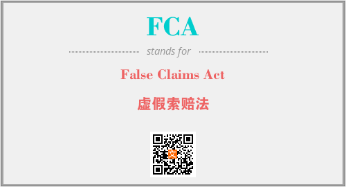 上述内容是“False Claims Act”作为“FCA”的缩写,解释为“虚假索赔法”时的信息,以及英文缩略词FCA所代表的英文单词,其对应的中文拼音、详细解释以及在英文中的流行度和相关分类、应用领域及应用示例等。