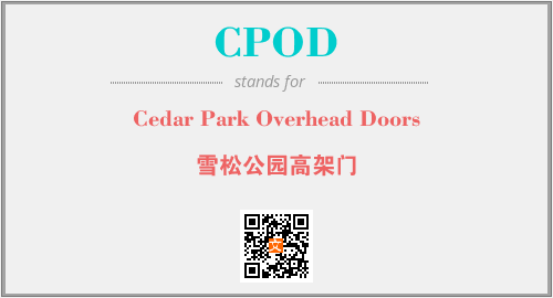 英文缩略词“CPOD”经常作为“Cedar Park Overhead Doors”的英文缩写来使用,中文表示:“雪松公园高架门”。本文将详细介绍英文缩写词CPOD所代表英文单词,其对应的中文拼音、详细解释以及在英语中的流行度。此外,还有关于缩略词CPOD的分类、应用领域及相关应用示例等。