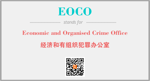上述内容是“Economic and Organised Crime Office”作为“EOCO”的缩写,解释为“经济和有组织犯罪办公室”时的信息,以及英文缩略词EOCO所代表的英文单词,其对应的中文拼音、详细解释以及在英文中的流行度和相关分类、应用领域及应用示例等。