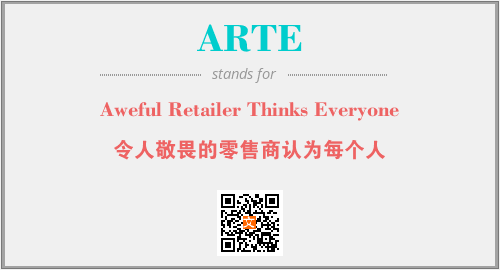 上述内容是“Aweful Retailer Thinks Everyone”作为“ARTE”的缩写,解释为“令人敬畏的零售商认为每个人”时的信息,以及英文缩略词ARTE所代表的英文单词,其对应的中文拼音、详细解释以及在英文中的流行度和相关分类、应用领域及应用示例等。
