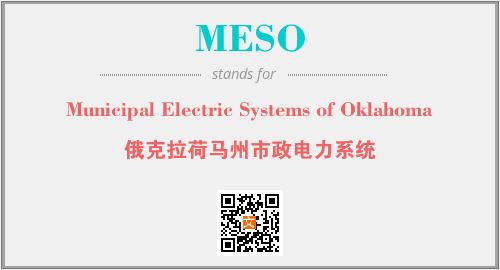 上述内容是“Municipal Electric Systems of Oklahoma”作为“MESO”的缩写,解释为“俄克拉荷马州市政电力系统”时的信息,以及英文缩略词MESO所代表的英文单词,其对应的中文拼音、详细解释以及在英文中的流行度和相关分类、应用领域及应用示例等。