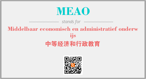 上述内容是“Middelbaar economisch en administratief onderwijs”作为“MEAO”的缩写,解释为“中等经济和行政教育”时的信息,以及英文缩略词MEAO所代表的英文单词,其对应的中文拼音、详细解释以及在英文中的流行度和相关分类、应用领域及应用示例等。