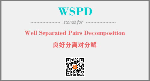 英文缩略词“WSPD”经常作为“Well Separated Pairs Decomposition”的英文缩写来使用,中文表示:“良好分离对分解”。本文将详细介绍英文缩写词WSPD所代表英文单词,其对应的中文拼音、详细解释以及在英语中的流行度。此外,还有关于缩略词WSPD的分类、应用领域及相关应用示例等。