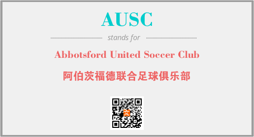上述内容是“Abbotsford United Soccer Club”作为“AUSC”的缩写,解释为“阿伯茨福德联合足球俱乐部”时的信息,以及英文缩略词AUSC所代表的英文单词,其对应的中文拼音、详细解释以及在英文中的流行度和相关分类、应用领域及应用示例等。