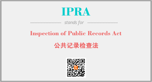 上述内容是“Inspection of Public Records Act”作为“IPRA”的缩写,解释为“公共记录检查法”时的信息,以及英文缩略词IPRA所代表的英文单词,其对应的中文拼音、详细解释以及在英文中的流行度和相关分类、应用领域及应用示例等。