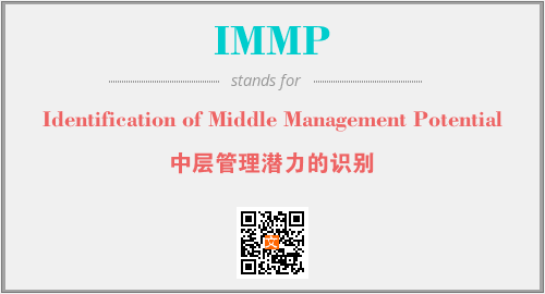 上述内容是“Identification of Middle Management Potential”作为“IMMP”的缩写,解释为“中层管理潜力的识别”时的信息,以及英文缩略词IMMP所代表的英文单词,其对应的中文拼音、详细解释以及在英文中的流行度和相关分类、应用领域及应用示例等。