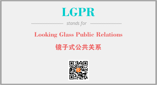 上述内容是“Looking Glass Public Relations”作为“LGPR”的缩写,解释为“镜子式公共关系”时的信息,以及英文缩略词LGPR所代表的英文单词,其对应的中文拼音、详细解释以及在英文中的流行度和相关分类、应用领域及应用示例等。