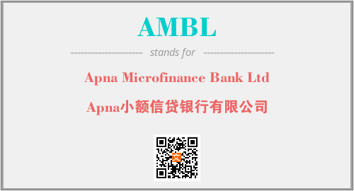 上述内容是“Apna Microfinance Bank Ltd”作为“AMBL”的缩写,解释为“Apna小额信贷银行有限公司”时的信息,以及英文缩略词AMBL所代表的英文单词,其对应的中文拼音、详细解释以及在英文中的流行度和相关分类、应用领域及应用示例等。